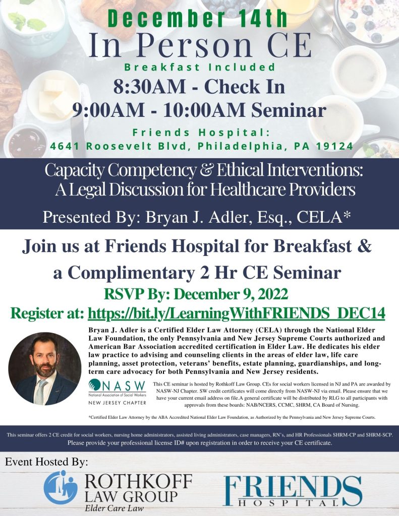 Join us at Friends Hospital for Breakfast & a Complimentary Two Hr CE Seminar.