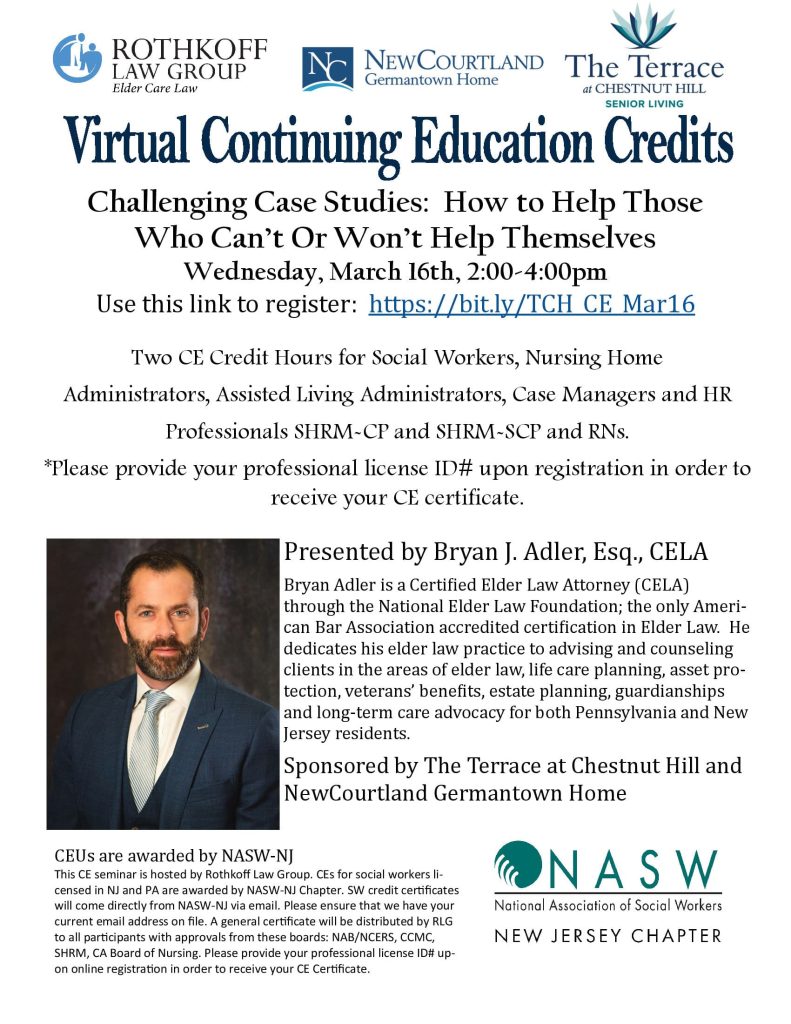 Two CE Credit Hours for Social Workers, Nursing Home Administrators, Assisted Living Administrators, Case Managers, and HR