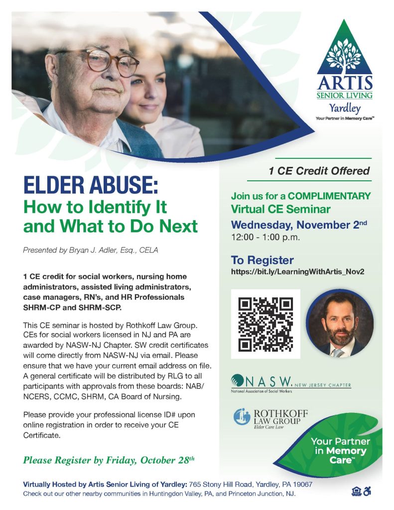 One CE credit for social workers, nursing home administrators, assisted living administrators, case managers,