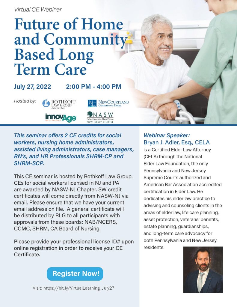 This seminar offers 2 CE credits for social workers, nursing home administrators,