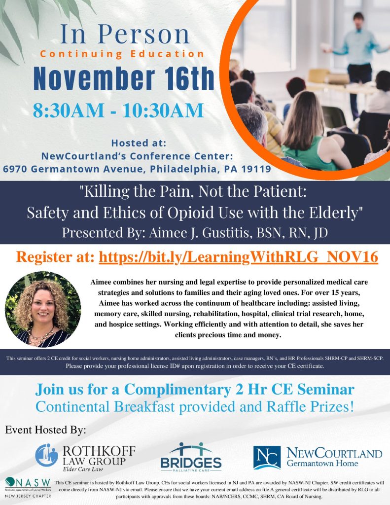 This seminar offers two CE credits for social workers, nursing home administrators, assisted living administrators,