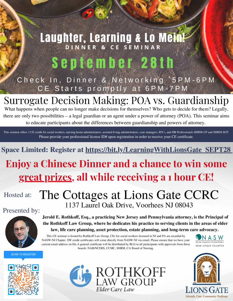 This seminar offers one CE credit for social workers, nursing home administrators, assisted living administrators, case managers, RNs, and HR Professionals SHRM-CP and SHRM-SCP.
