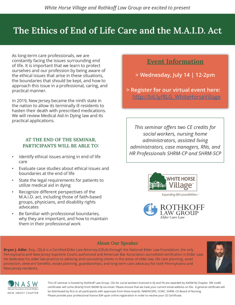 This virtual CE offers two credits for social workers, nursing home administrators, assisted living administrators, case managers, RNs, and HR Professionals SHRM-CP, SHRM-SCP.